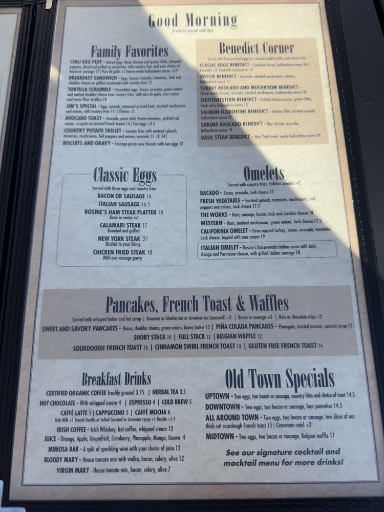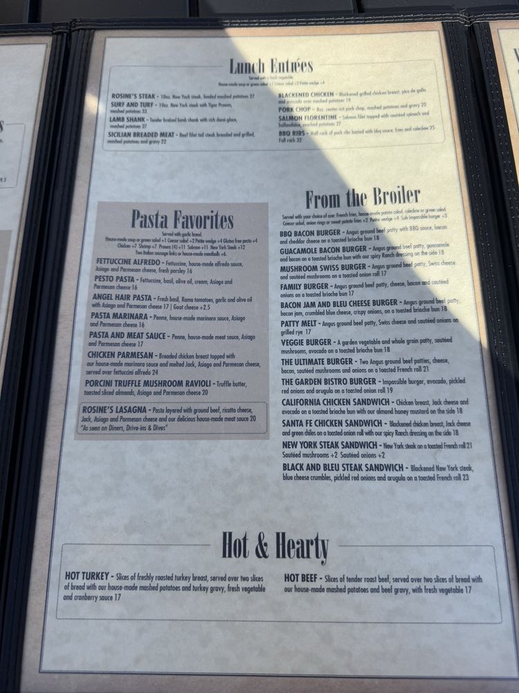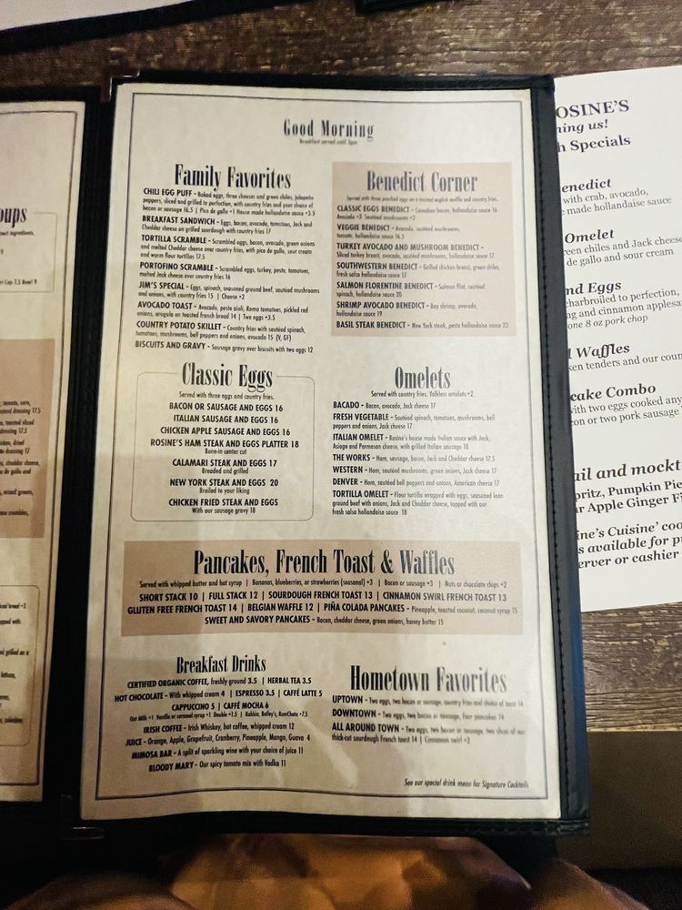 Rosine’s Restaurant Menu